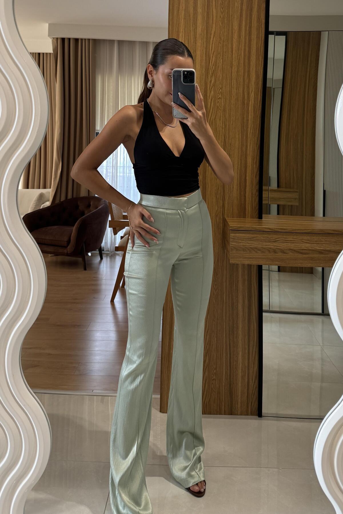 Gizem Ecemiş Bolesa Saten Yüksek Bel Palazzo Pantolon