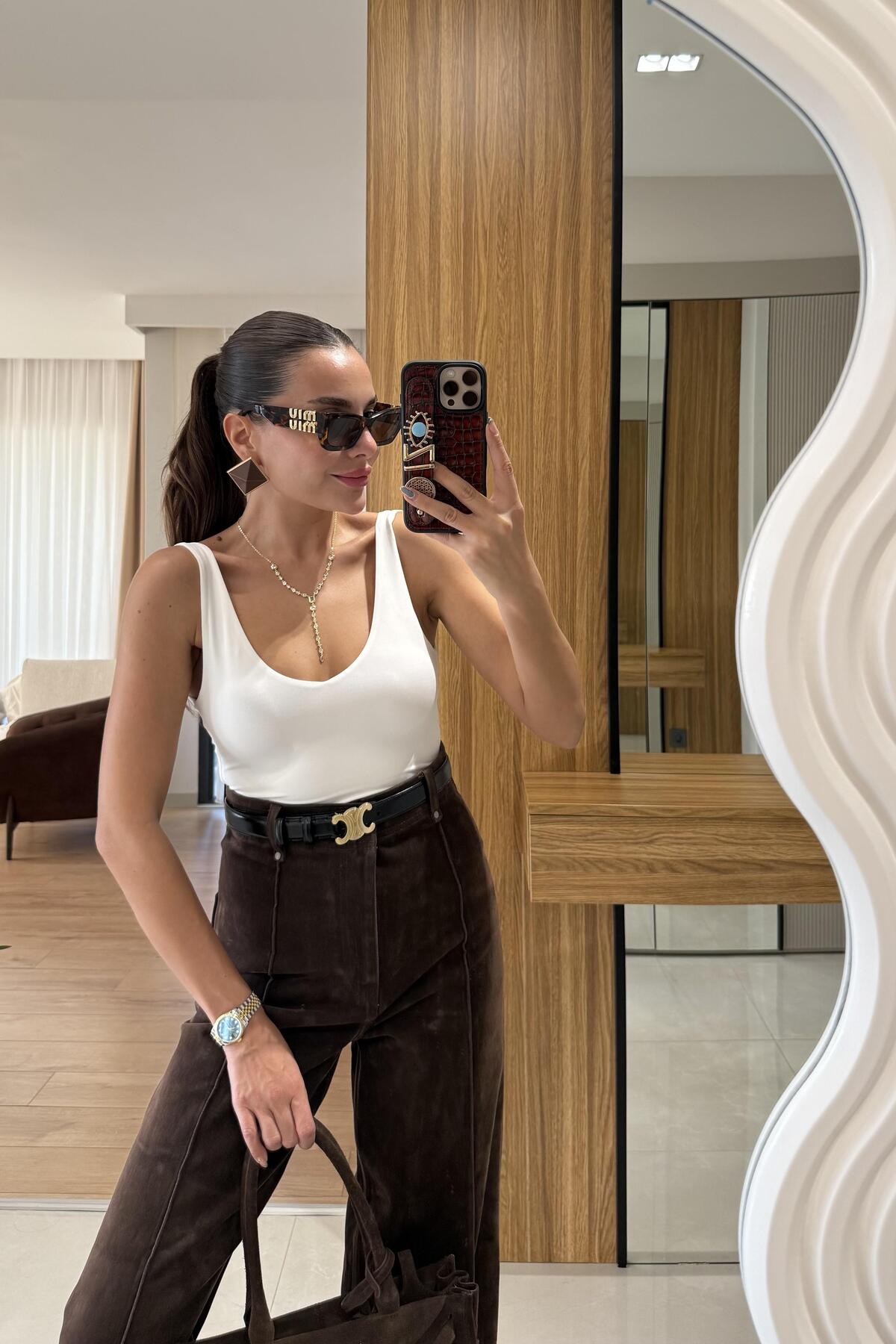 Gizem Ecemiş Denvis Beyaz Dekolteli Basic Bodysuit Özellikleri