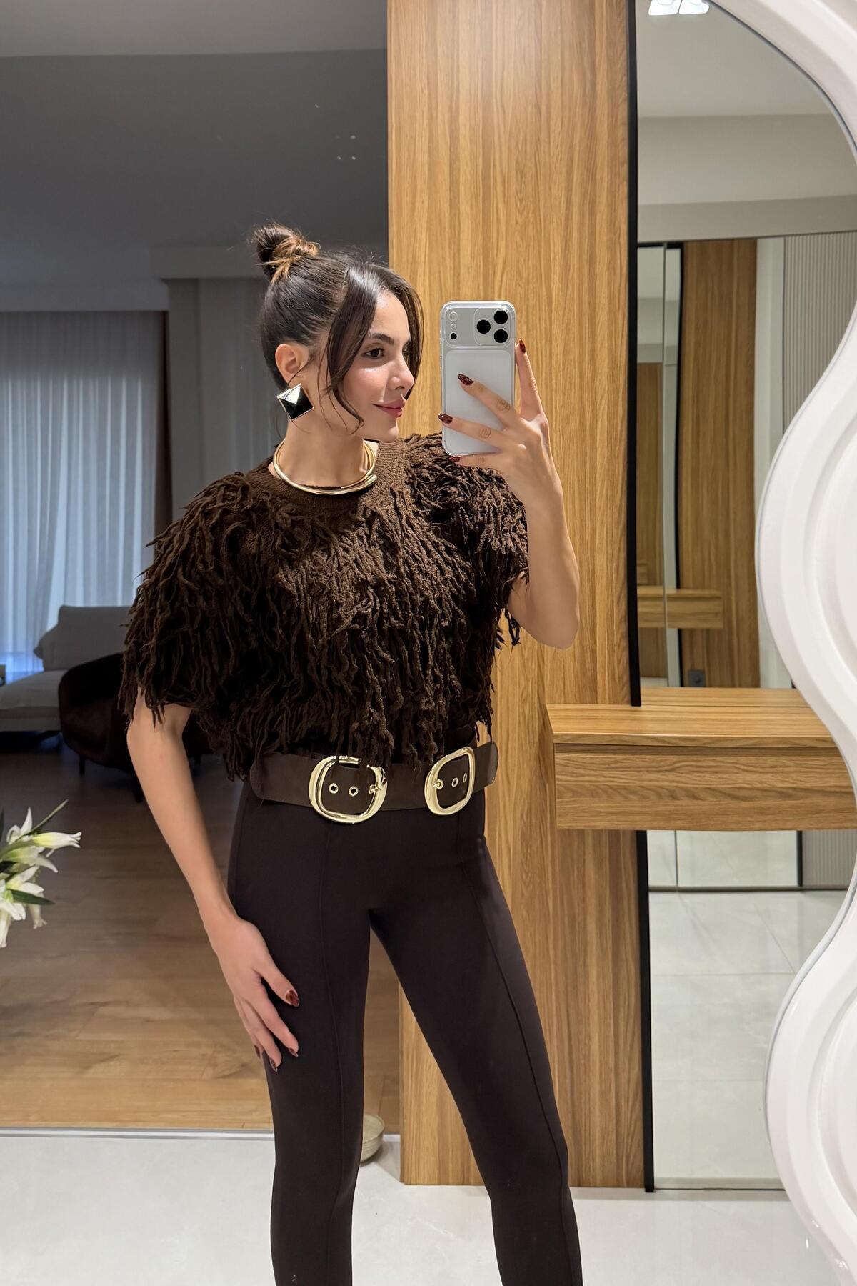 Gizem Ecemiş Design Acı Kahve Püsküllü Kazak