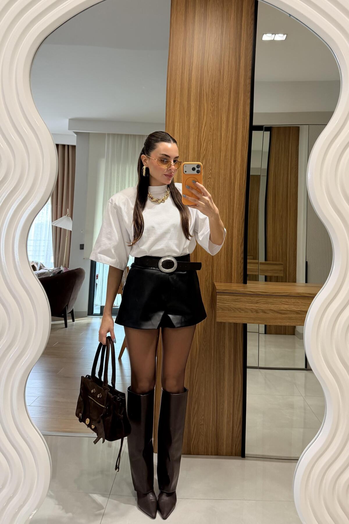 Gizem Ecemiş Fayme Siyah Deri Şort Özellikleri