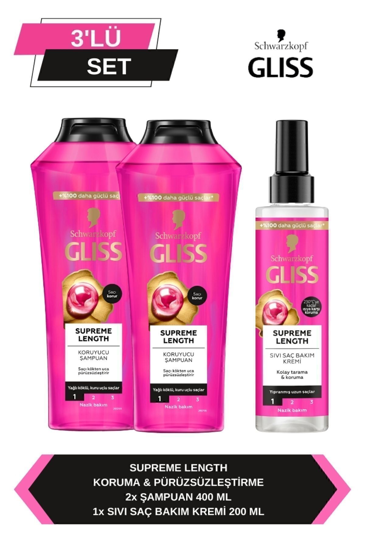 Gliss Supreme Length Şampuan 400 ml x 2 Adet + Sıvı Saç Kremi 200 ml Özellikleri