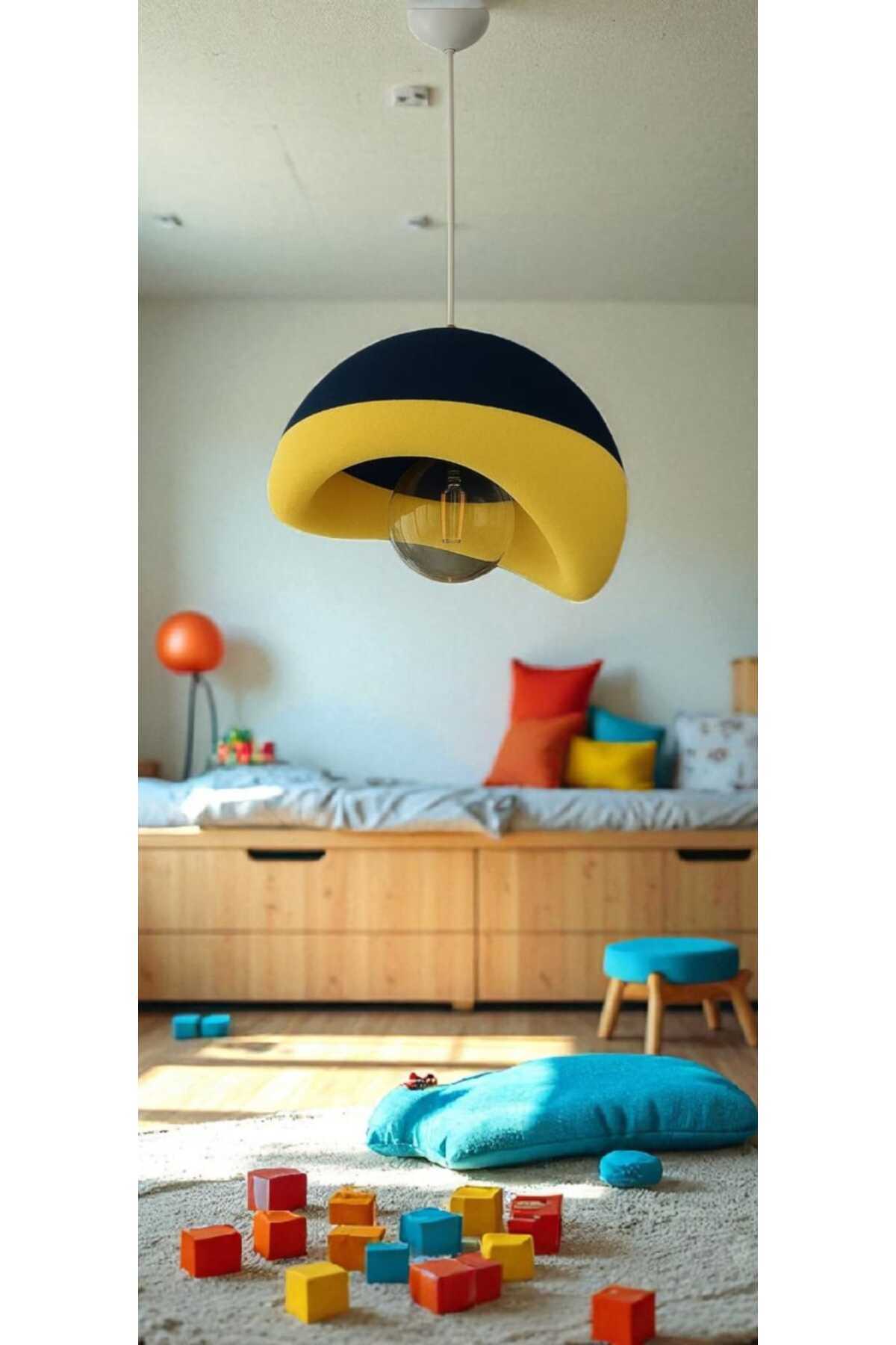 GLOBELUX Taraftara Özel Sarı Lacivert Dekoratif Bohem ve Beton Sarkıt Avize (Rustik Lamba Hediye)