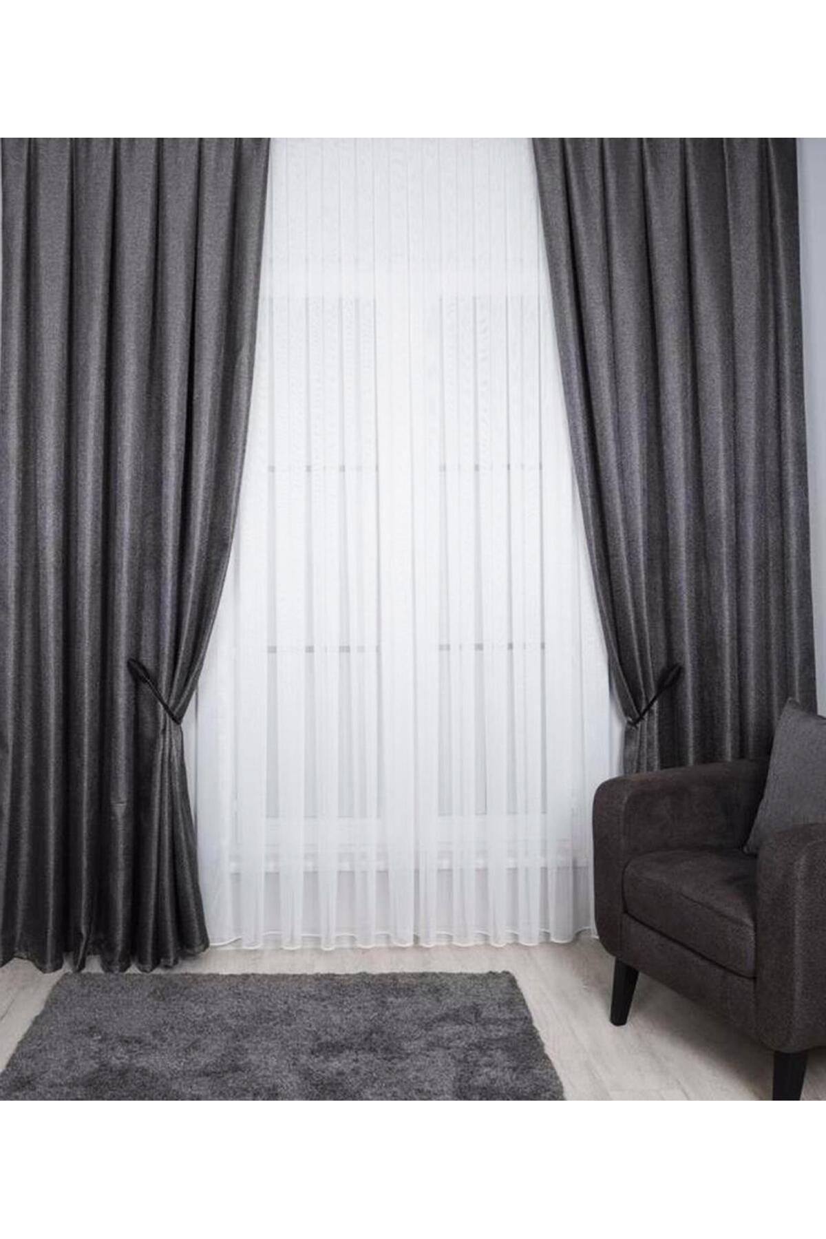 GOCCIA Hasır Dokulu Lüks Fon Perde Pilesiz Tek Kanat Koyu Gri Özellikleri