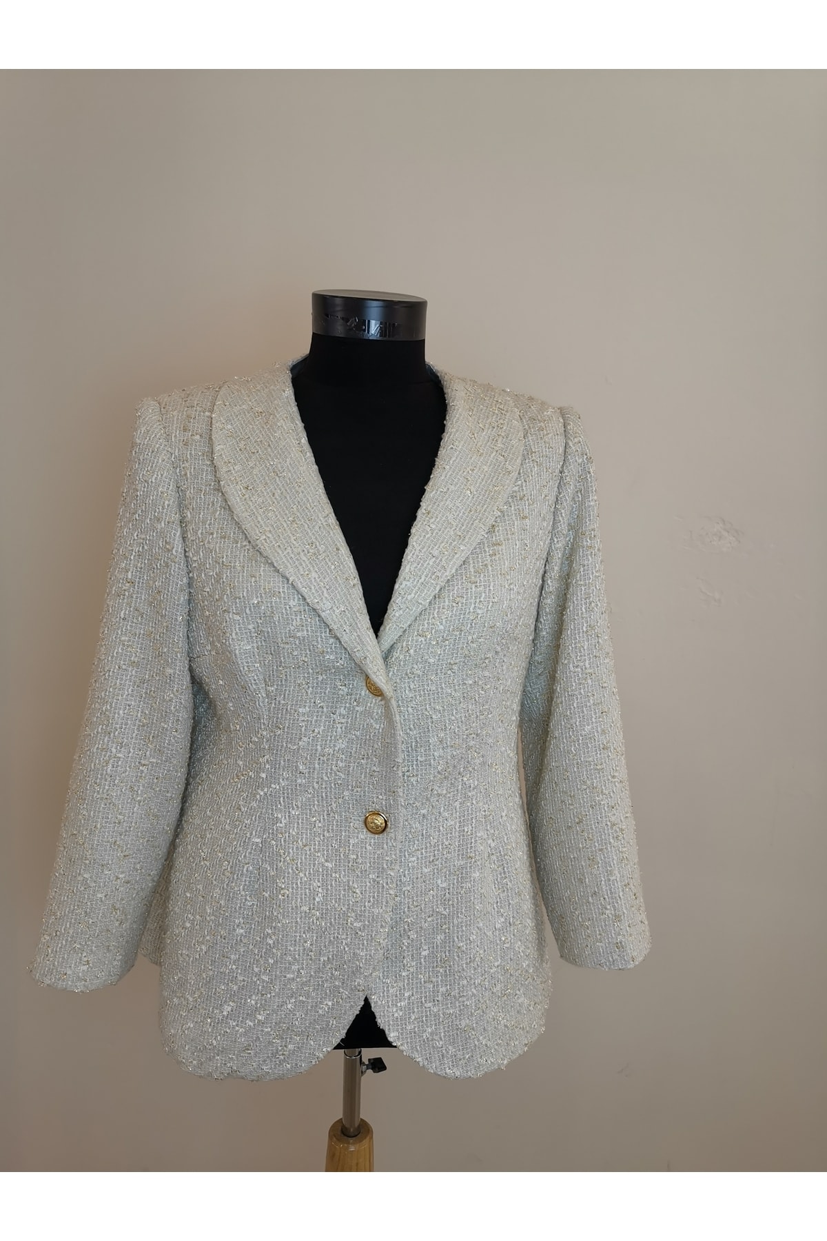 gönül moda Gold Düğmeli Tüvit Ceket Ekru