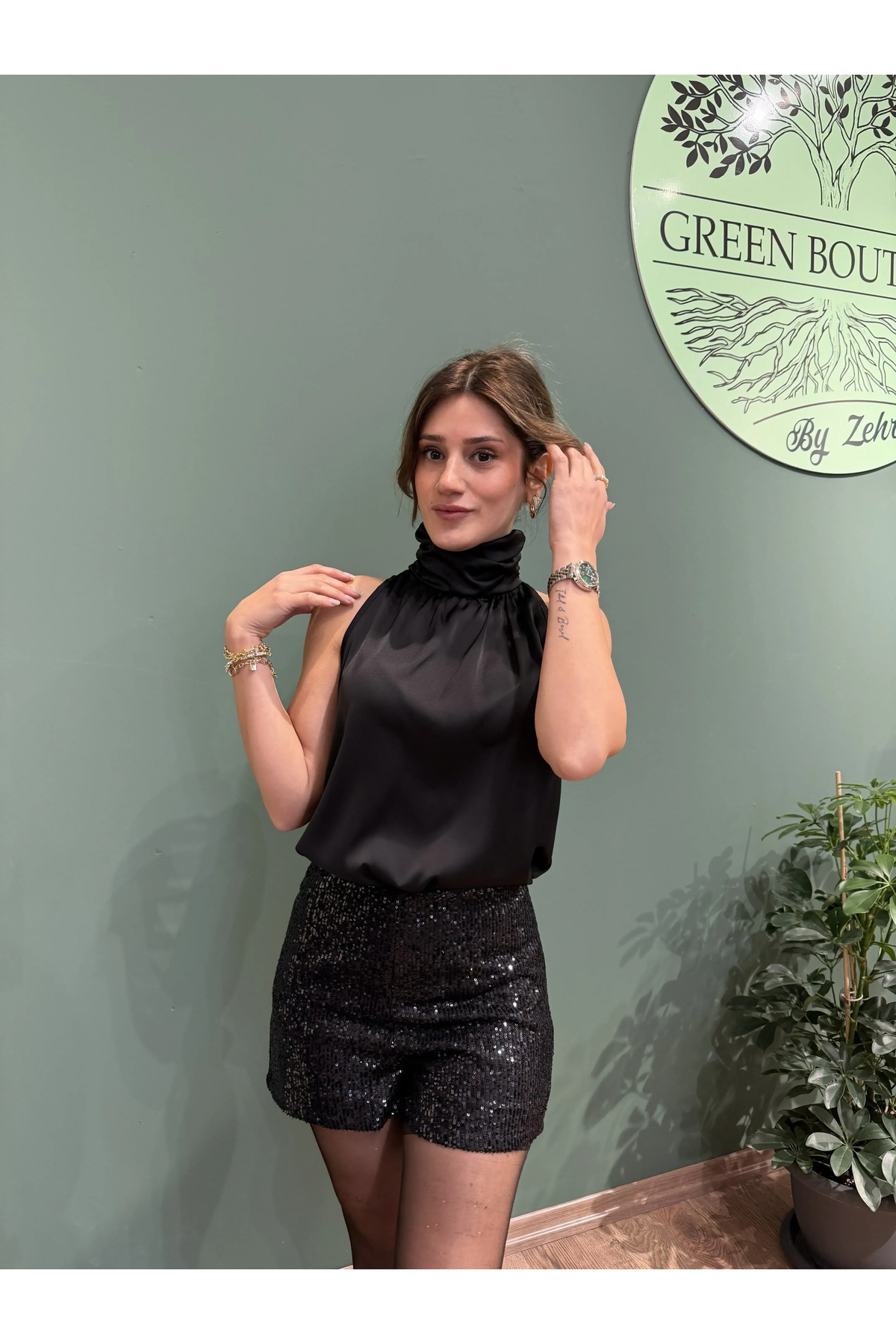 Greenboutique Pullu Payet Şort Siyah Özellikleri