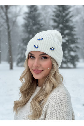 Ritagarcia Siperli Çift Kat Taş Triko Örme Bere