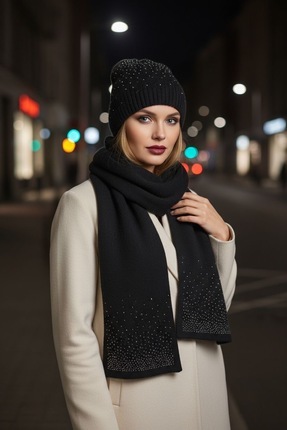 Eke Tekstil Unisex Katlamalı TAŞ,SİYAH 2'Lİ Bere Seti EKEBERESETİ2LİYENİ