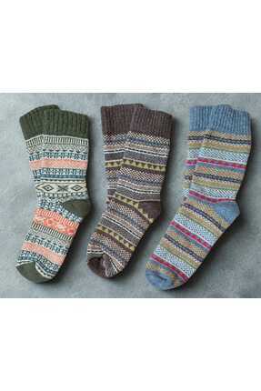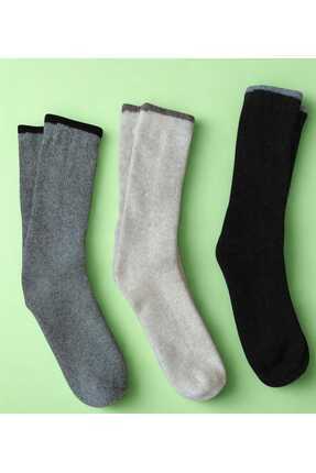 D'S Damat DS Damat Pamuk 3'lü Çorap Set GRİ-SİYAH-LACİ