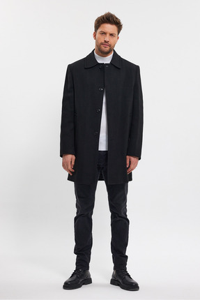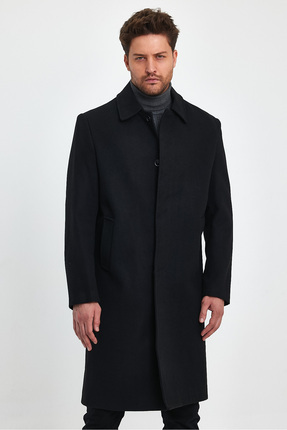 Livio Ferri Erkek Regular Fit Düğmeli Cepli Kışlık Astarlı Klasik Uzun Kaşe Kaban