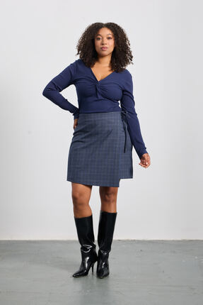 Jimmy Key Grı Dar Kesim Normal Bel Ekose Desenli Mini Etek