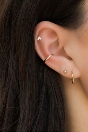 Jerie Silver Gold Halka Detaylı Earcuff Kıkırdak Küpe