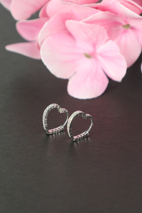 Asia by Leuvoié Zirkon Taşlı Gümüş Kaplama Çelik Kalpli Küpe