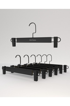 pure age Desenli Esnek Kalın Elbise Pantalon Fular Ceket Askısı 6 Lı Set- Siyah