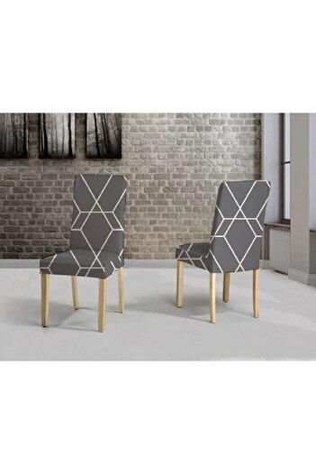 elgeyar Desenli Kadife Sandalye Kılıfı,likrali,lastikli,standart , Gri Geometrik Desen(1 Adet)
