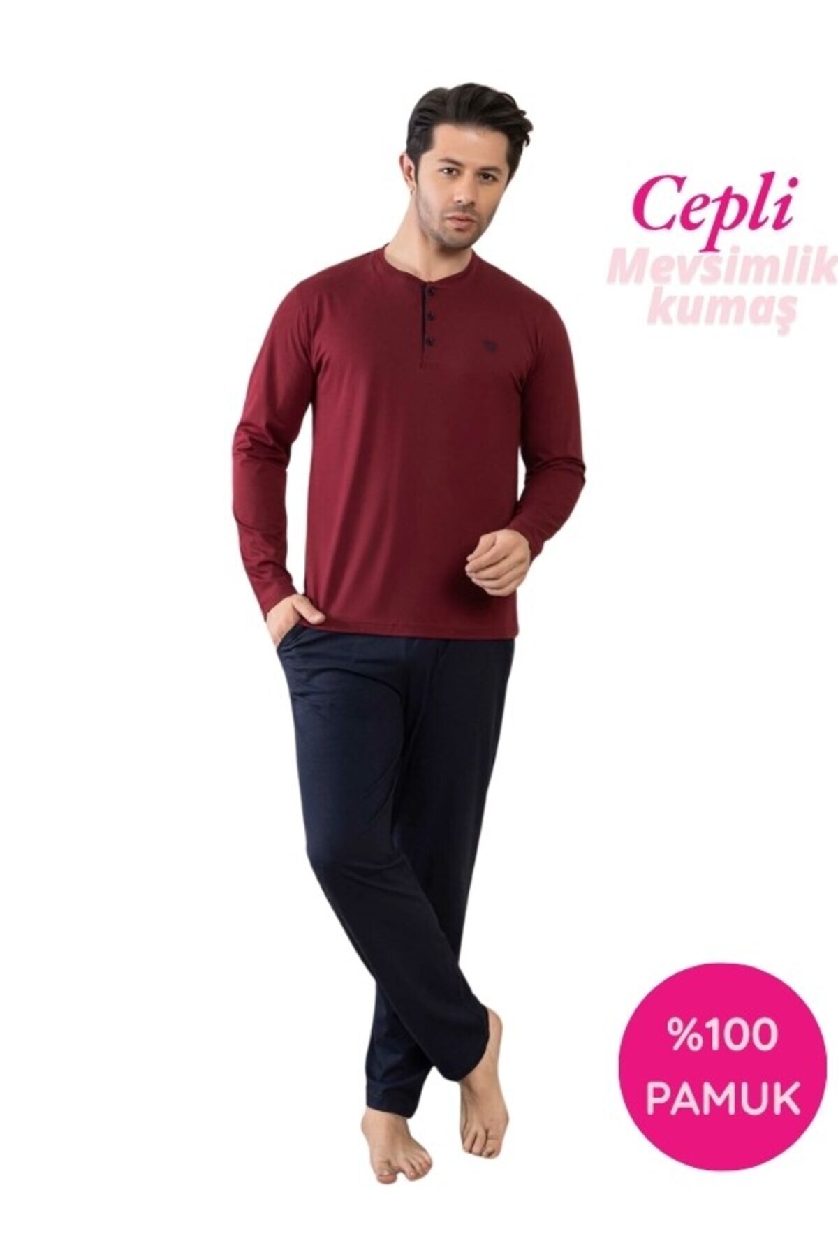 GUAVA+ Erkek Düz Renk 3 Düğmeli %100 Pamuk Mevsimlik Uzun Kol Cepli Pijama Takımı Özellikleri