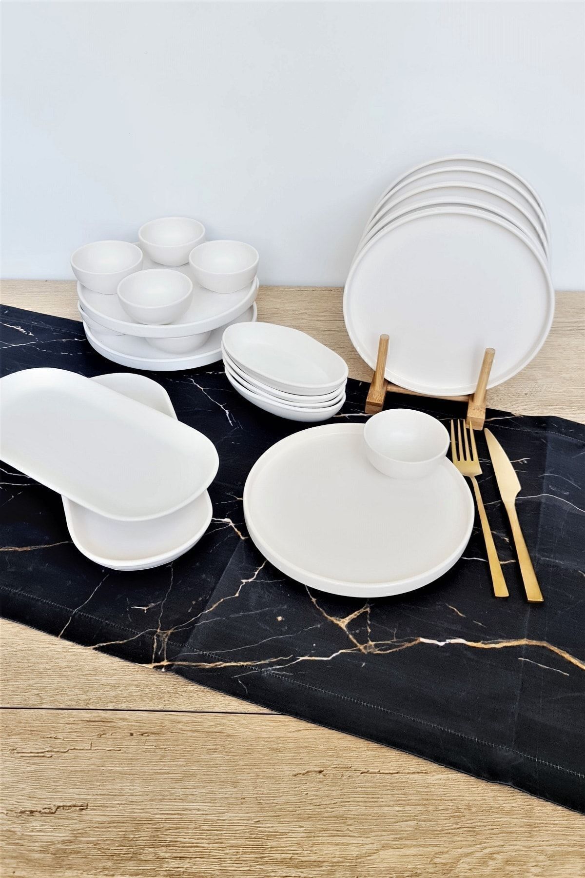 GULHANILE Stackable Mat Beyaz 22 Parça 6 Kişilik Kahvaltı Takımı