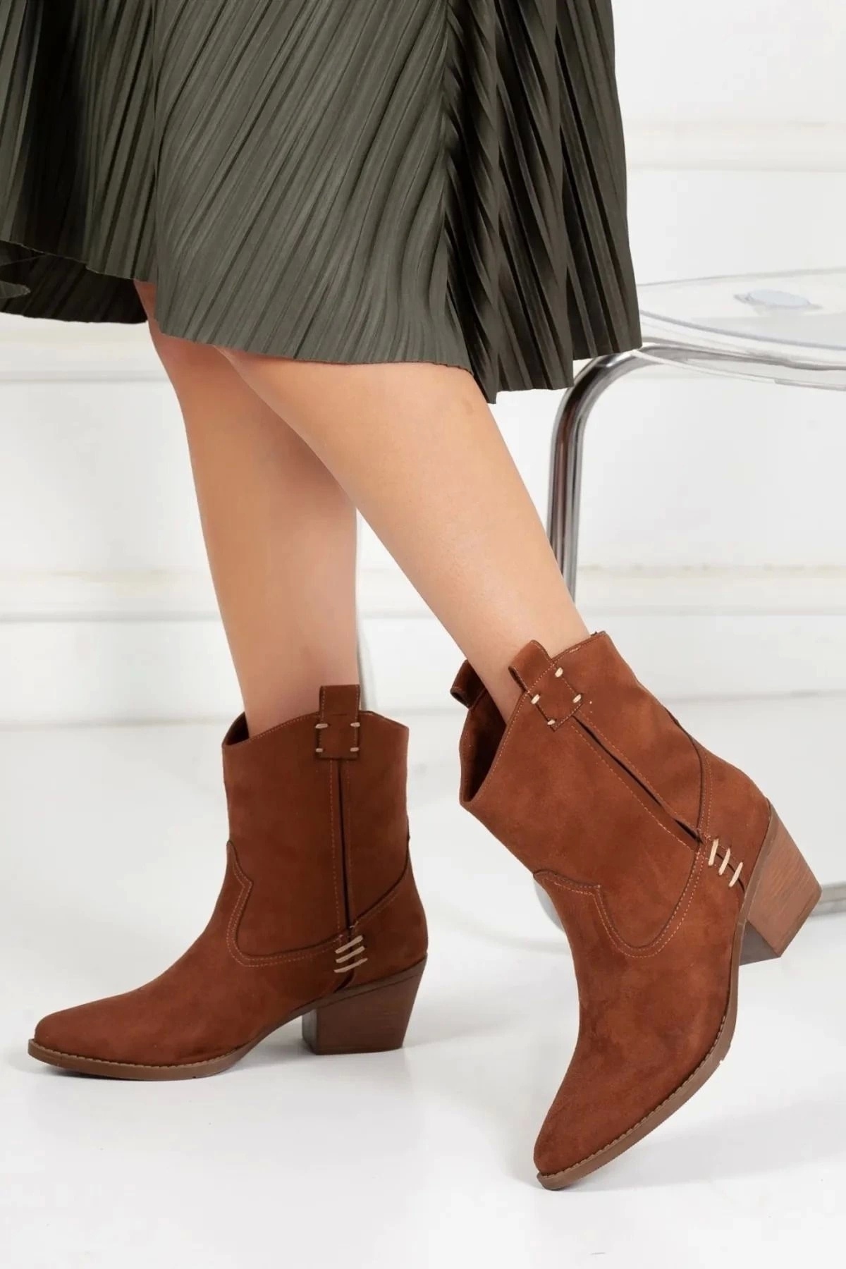 GULT Taba Kalın Topuklu süet Kovboy Bot Özellikleri