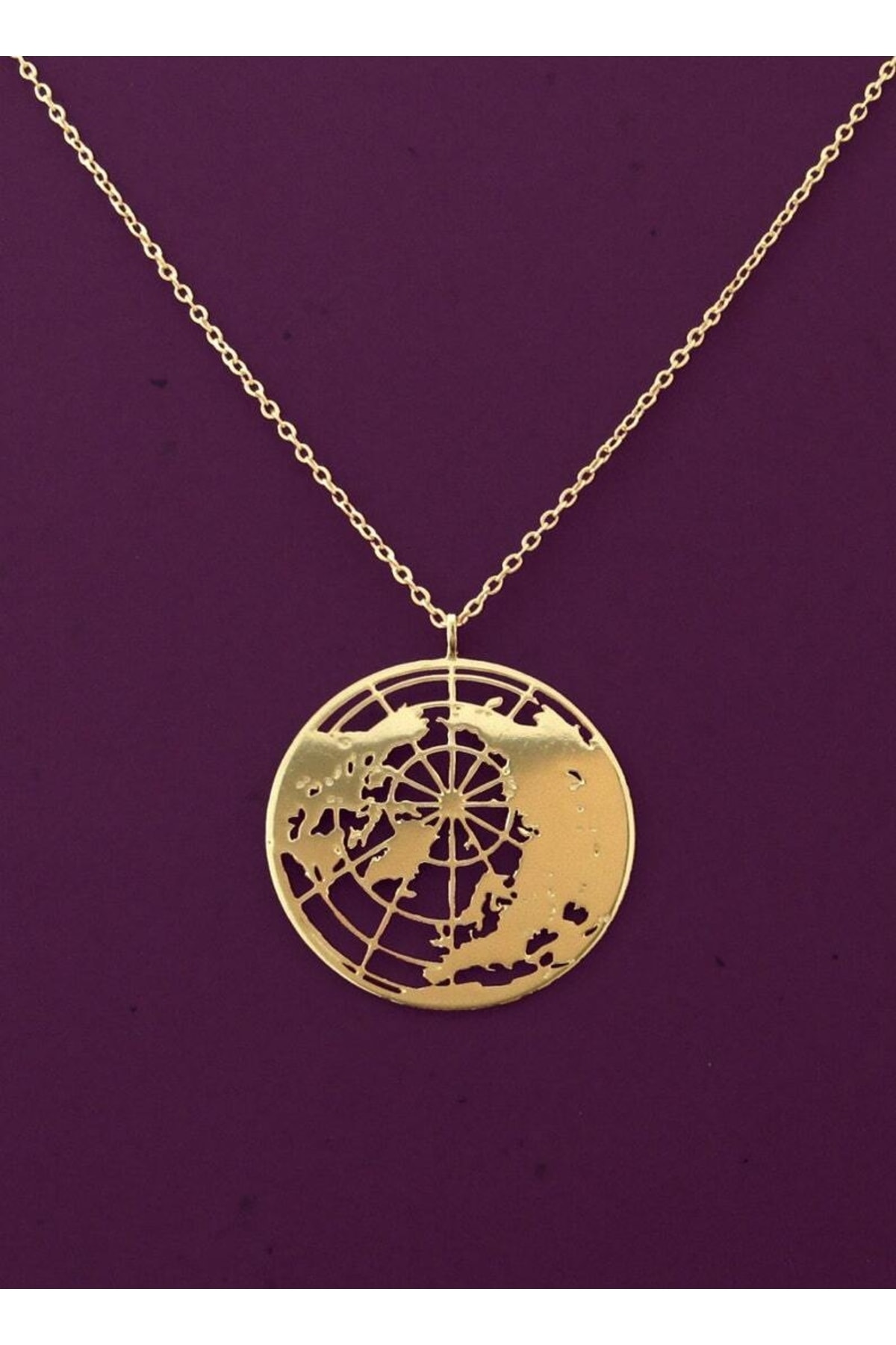 GÜMÜŞ 24 Ayar Has Altın Kaplama Dünya Küre Kolye