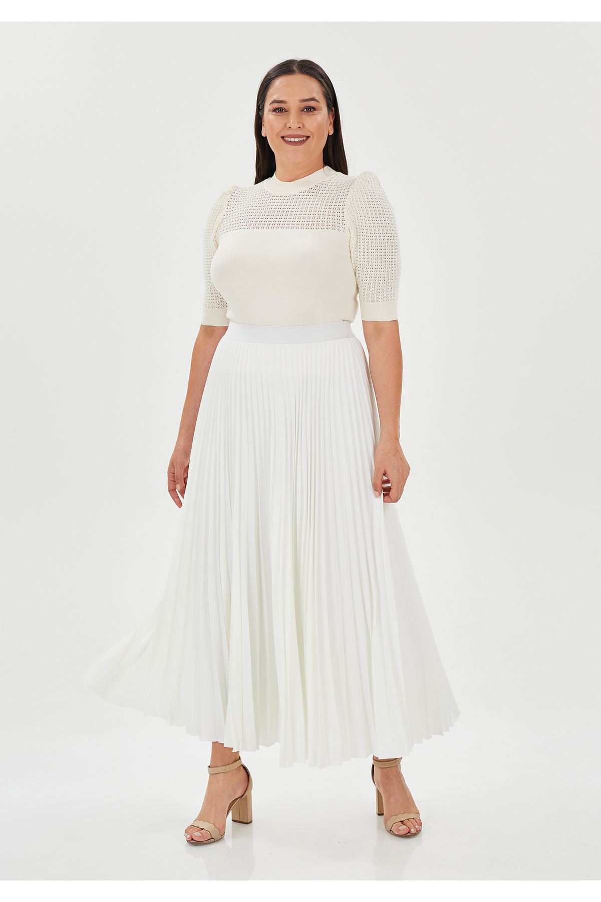 Guzella Maxi Boy Beyaz Pliseli Etek