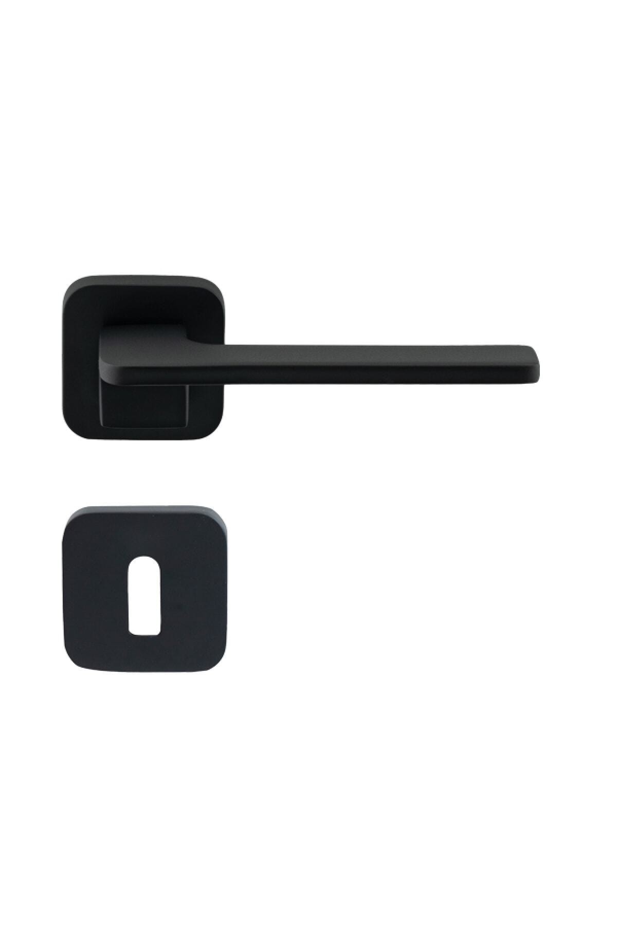 Hafele Torres Oda Kapı Kolu Seti, Mat Siyah, Kare Rozetli Oda Kapı Kulpu
