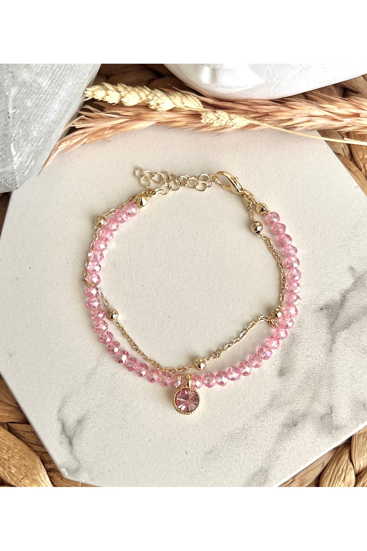 HALHALMILL Pembe Kristalli Bileklik