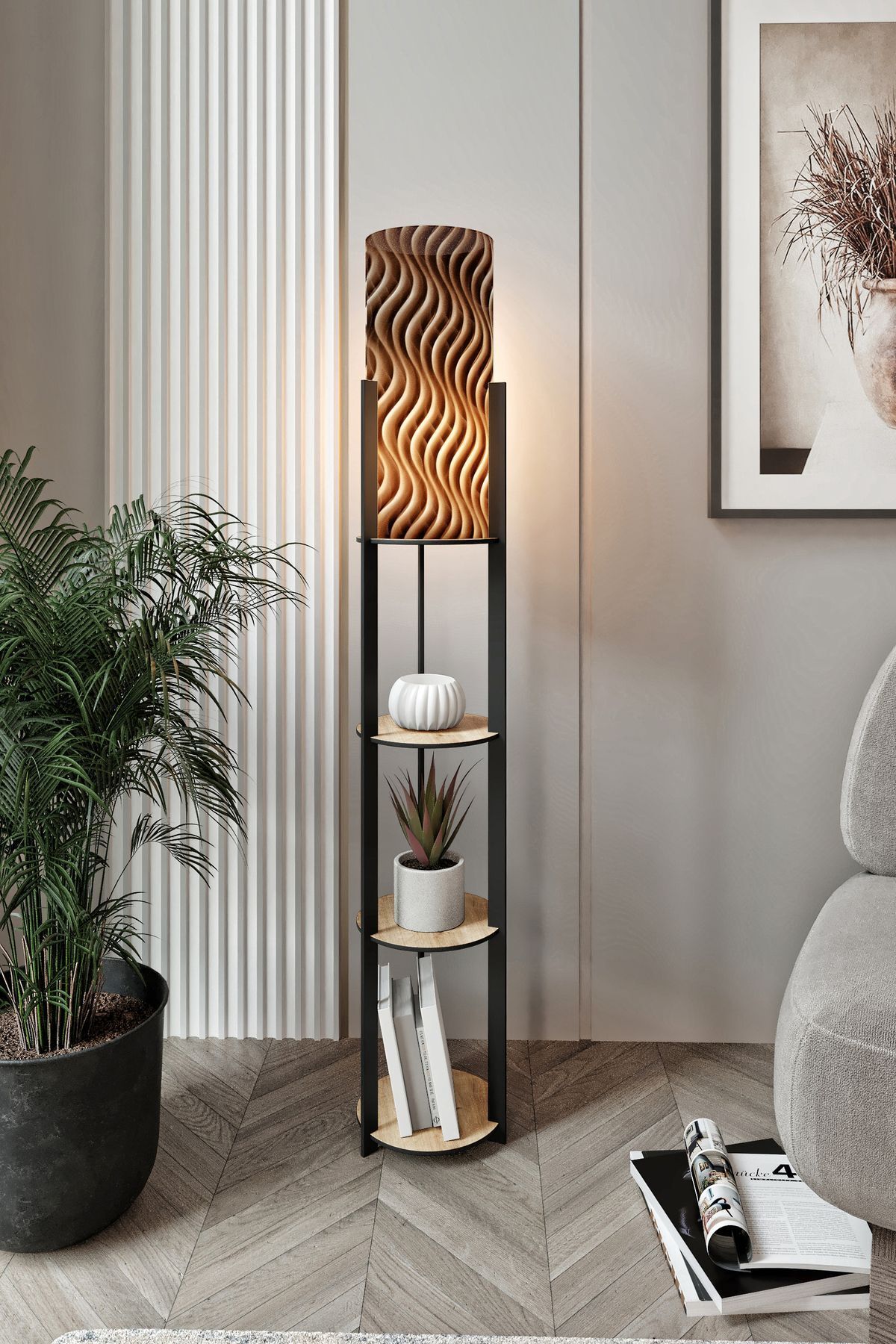 Halımax Dora Meşe Yuvarlak Raflı Line Modern Dekoratif Lambader