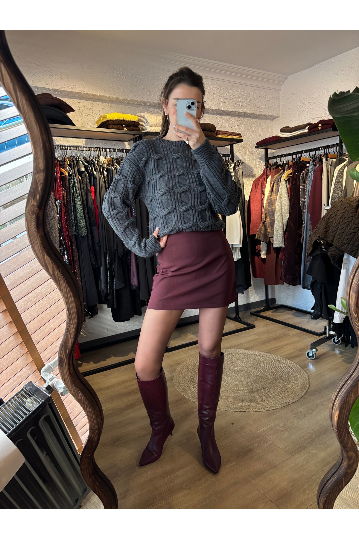 HANDAN GEDİK STUDİO Kendinden Desenli Basic Triko