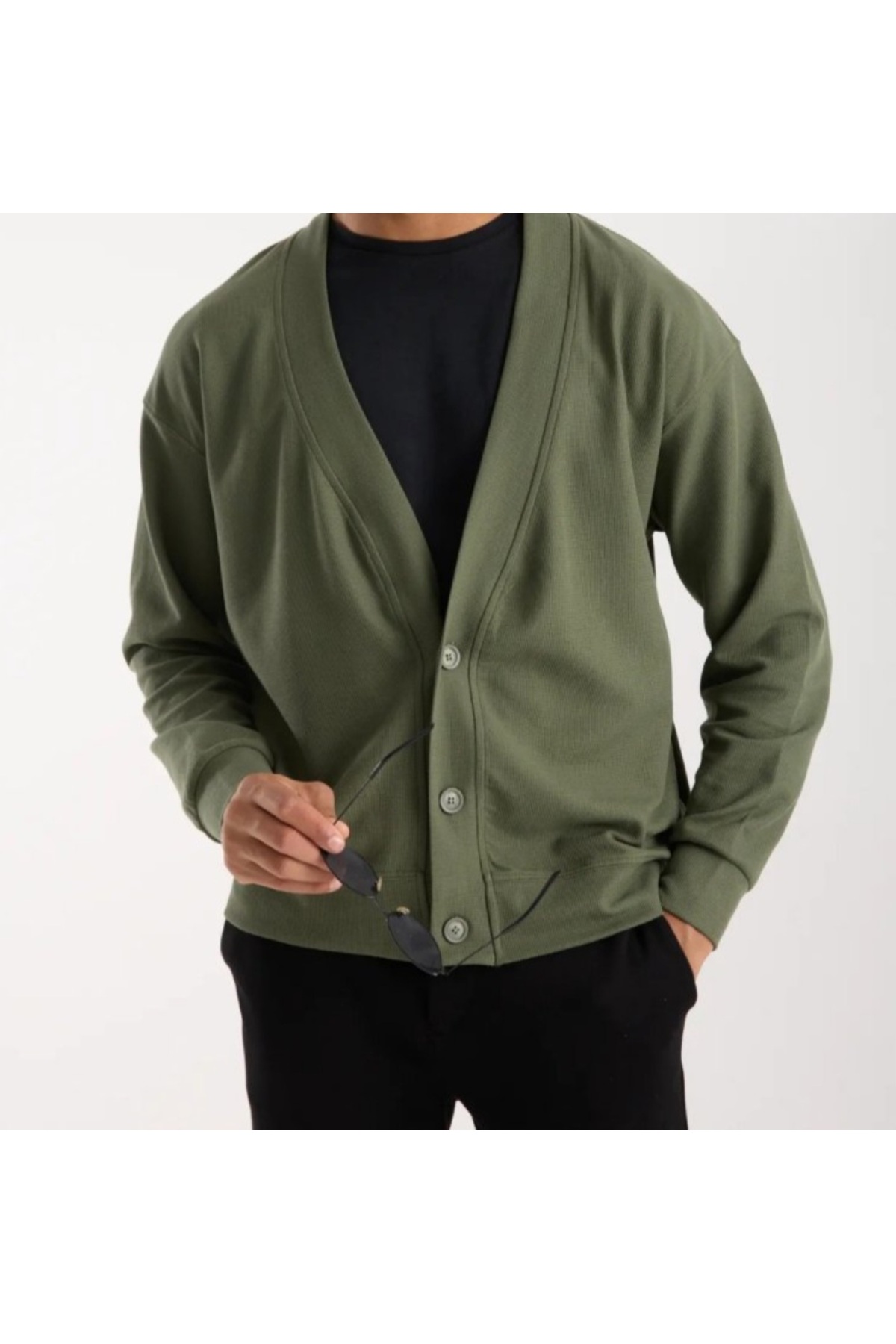 HARMONISTIL Oversize Yeşil Basic 3 Düğme Hırka
