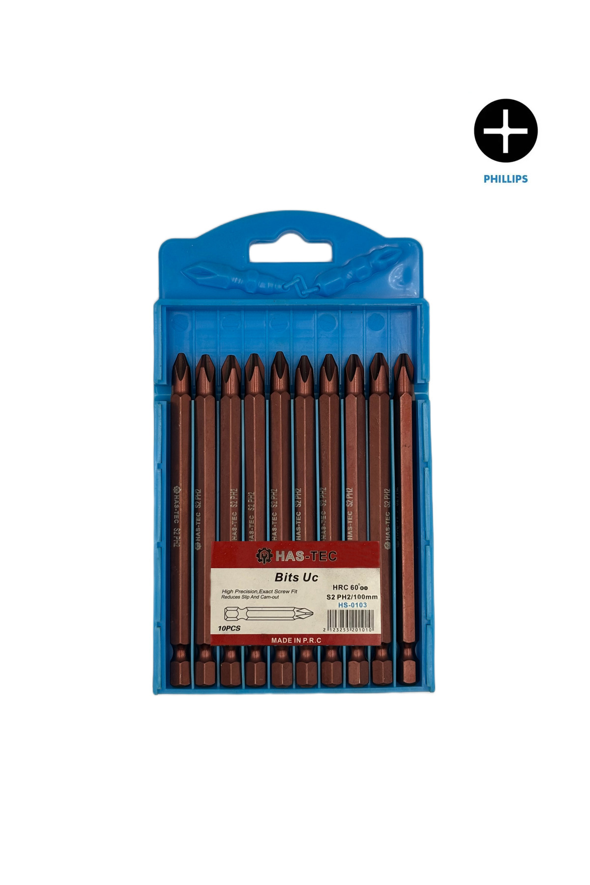 HAS-TEC S2 PH2 Bits Uç – 100 mm | 10'lu Yıldız Uç Seti – Vidalama İşlemlerinde Maksimum Dayanıklılık