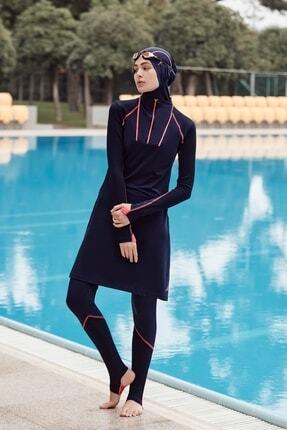 Haşema Performans Serisi Turuncu Biyeli Siyah 5 Parça Tam Tesettür Mayo Takımı 2019