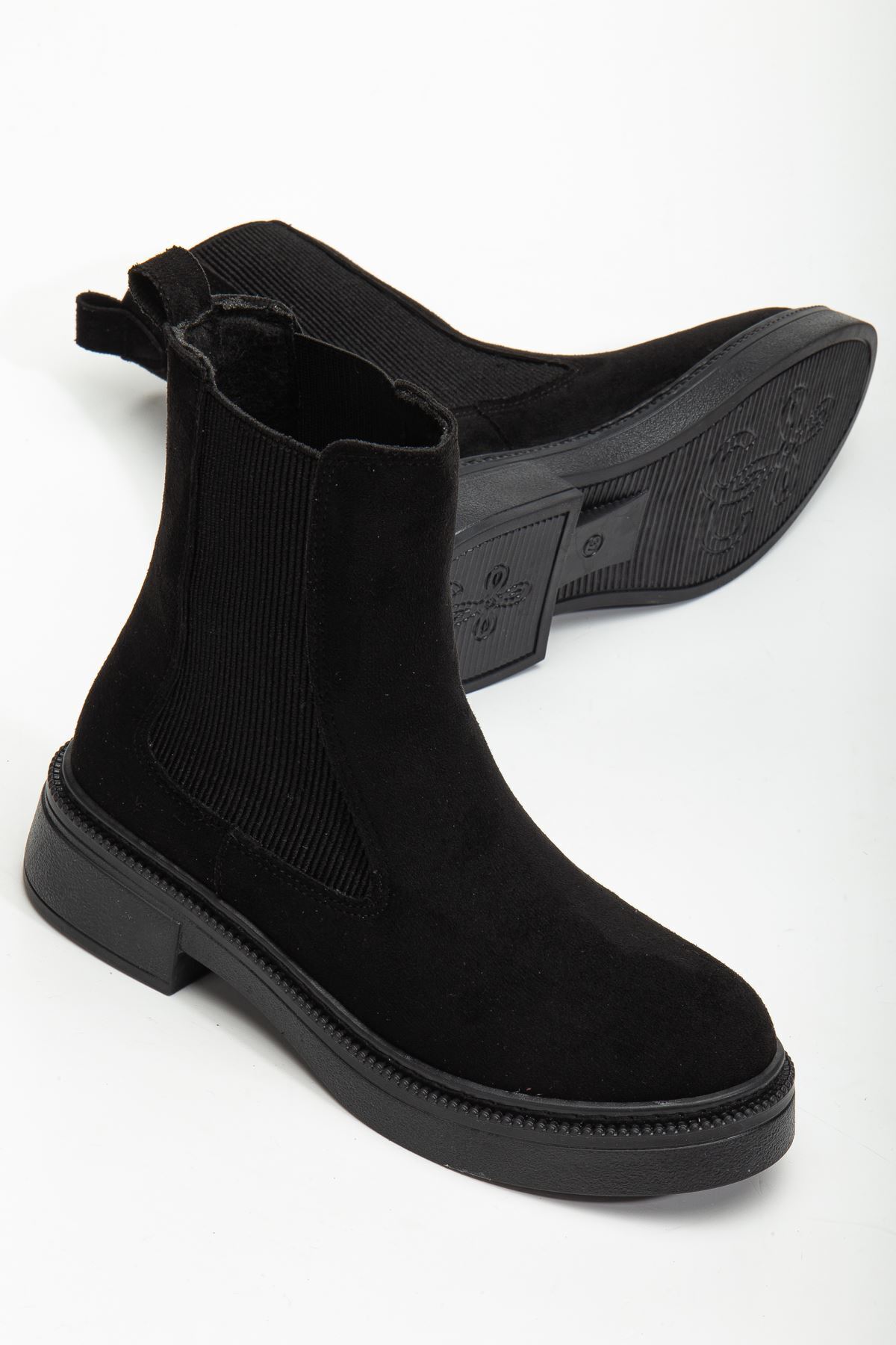 Hayalimdeki Ayakkabı Kadın Lastikli Günlük Siyah Süet Kalın Tabanlı Bot