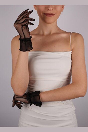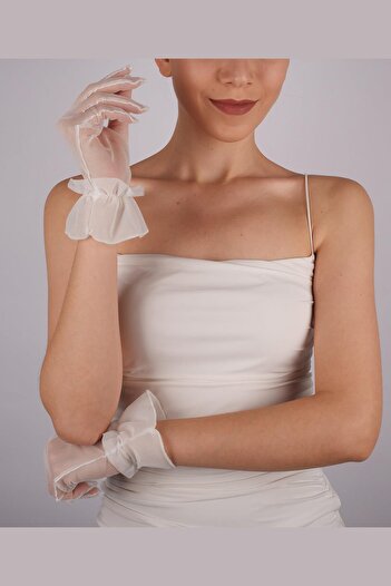 Hayalperest boncuk Tül Fırfırlı Sade Gelin Eldiveni Parti Eldiveni