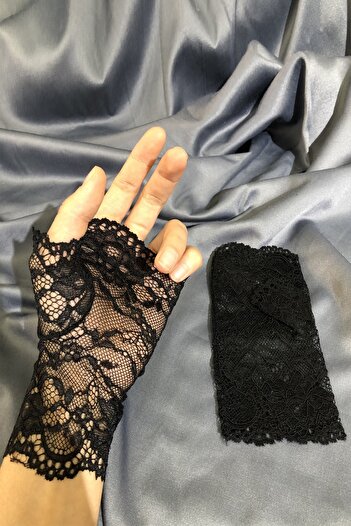 Hayalperest boncuk Siyah Dantelli Yarım Parmaklı Eldiven