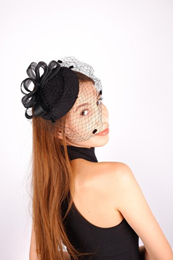 Hayalperest boncuk Siyah Vualet Nikah Şapkası Dilda Gelin Aksesuarı