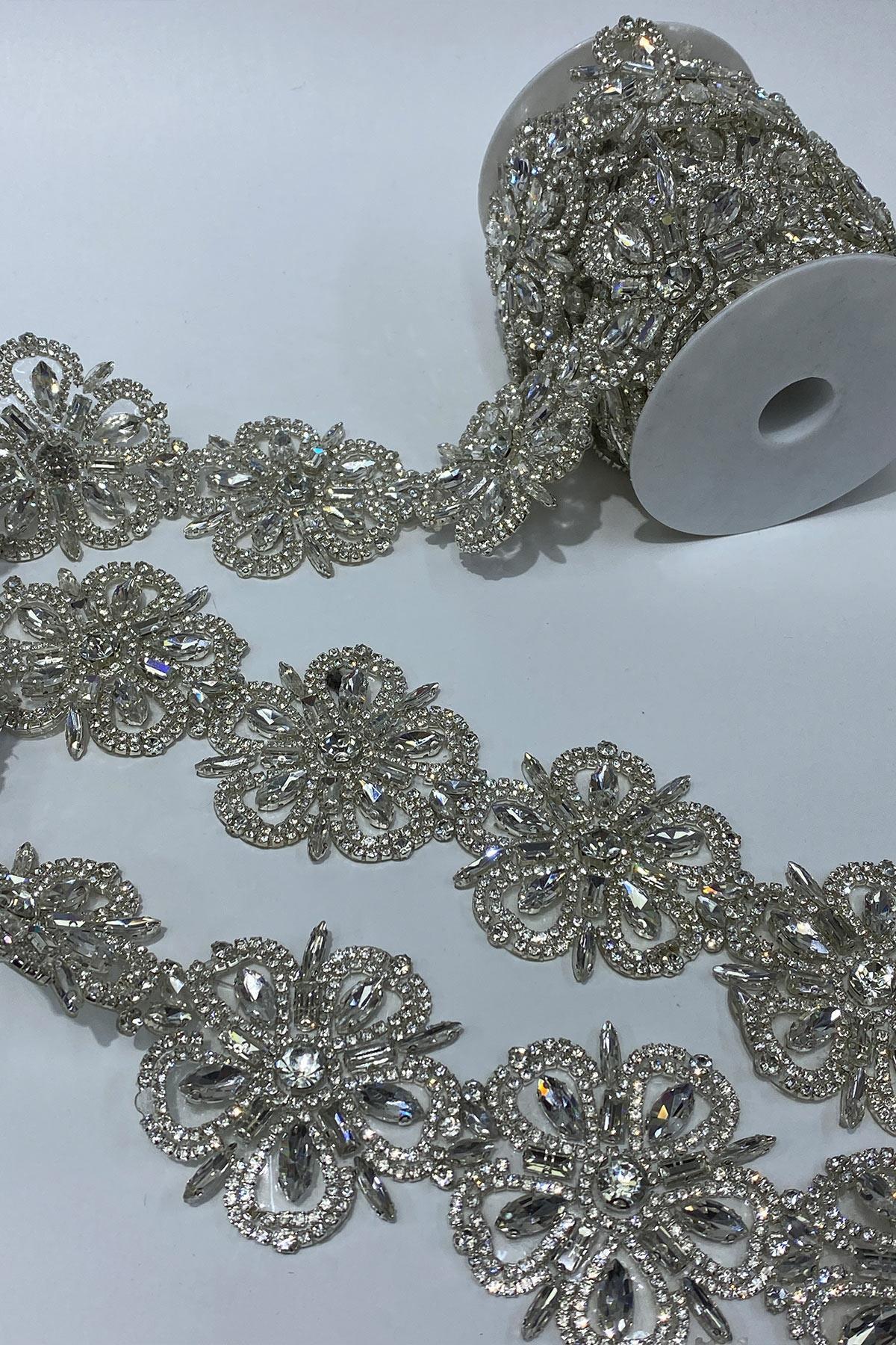 Hayalperest boncuk Çiçek Desen Taşlı Şerit Aplik Bordür