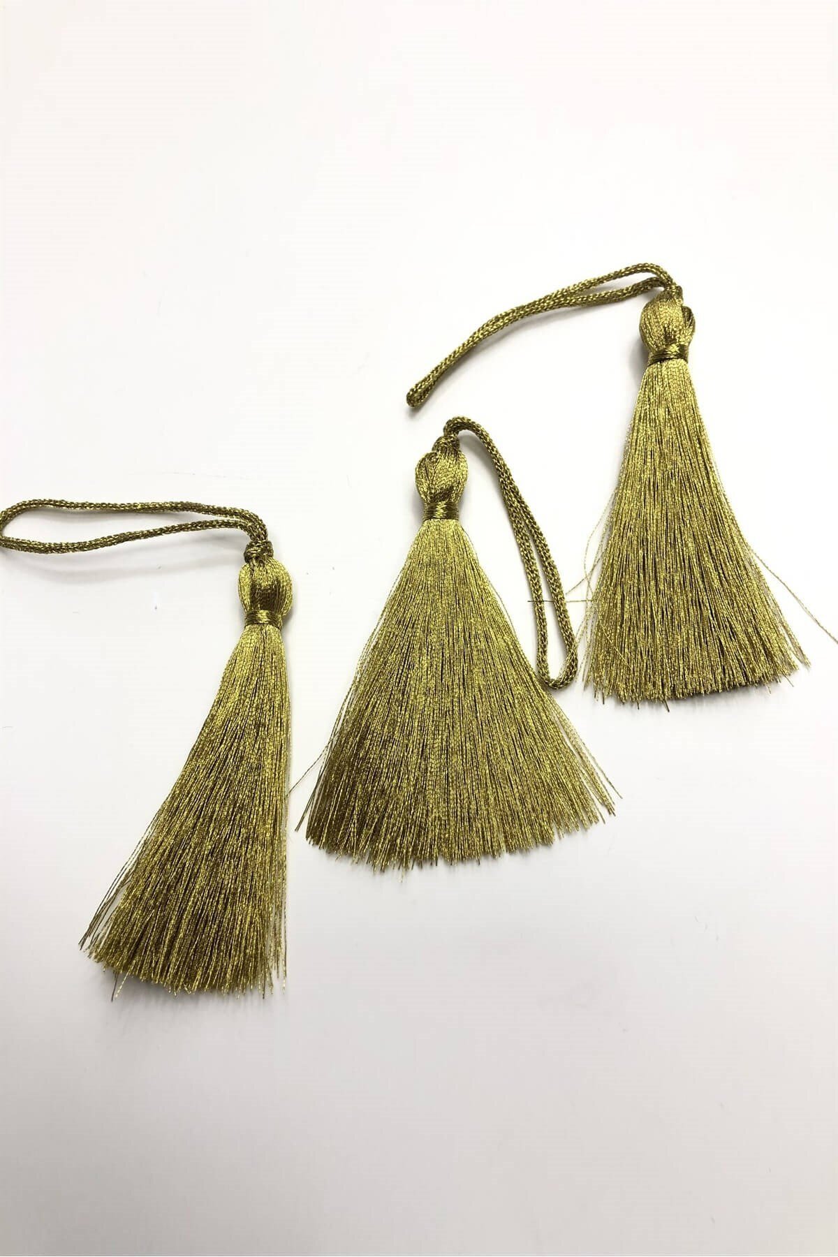 Hayalperest boncuk Koyu Sarı Simli Tekli Püskül 7 cm (10 adet)
