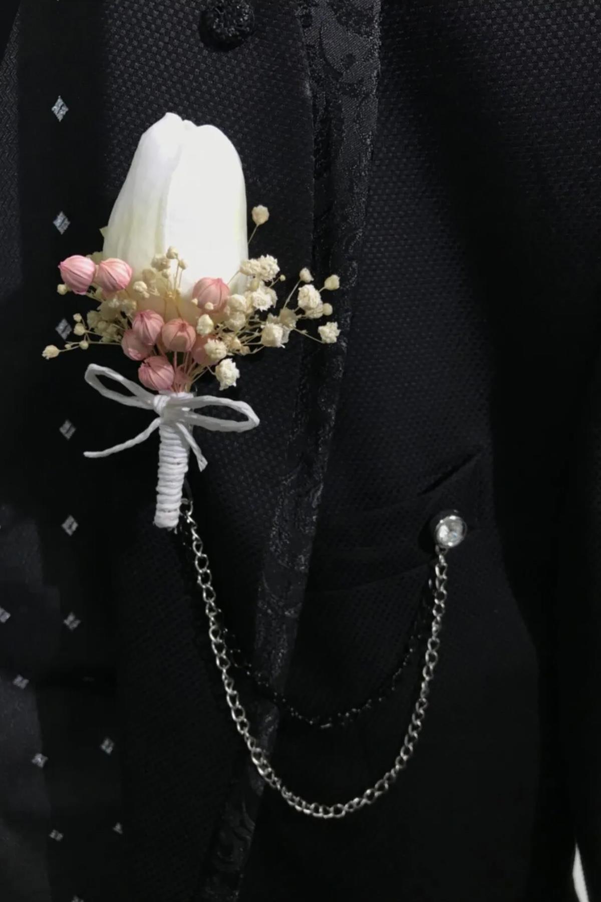 Hayalperest boncuk Pudra Cipsolu Tek Lale Yaka Çiçeği Damat Yaka Çiçeği Sağdıç Yaka Çiçeği 1 Adet Özellikleri