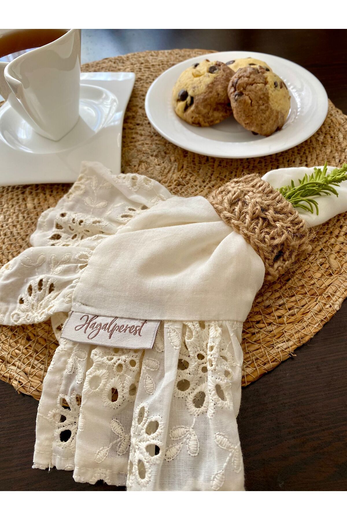 Hayalperest VUAL FİSTO FIRFIR DETAYLI SUNUM PEÇETESİ EKRU RENK 8 ADET