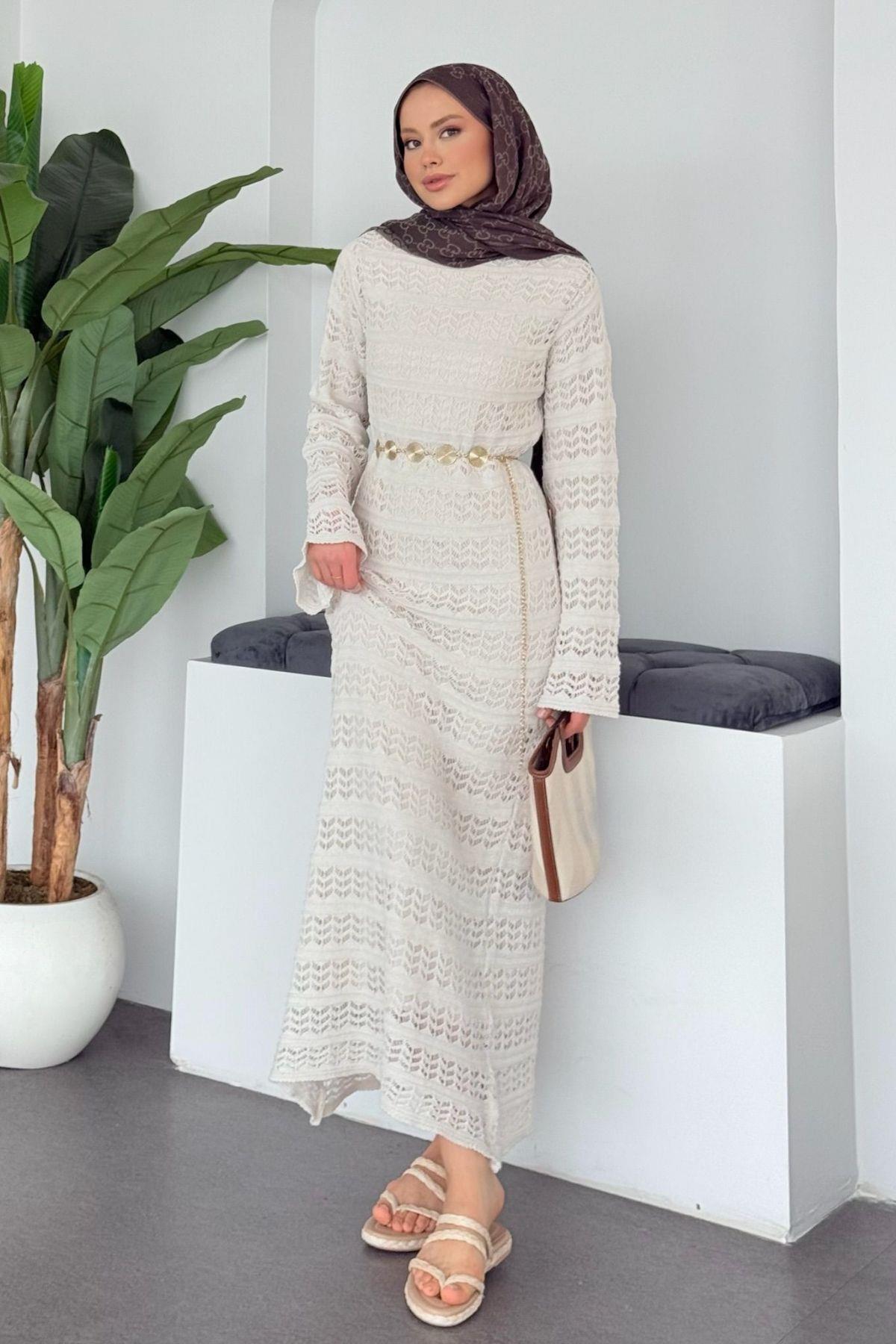Hazamoda Peny Örme Elbise Krem