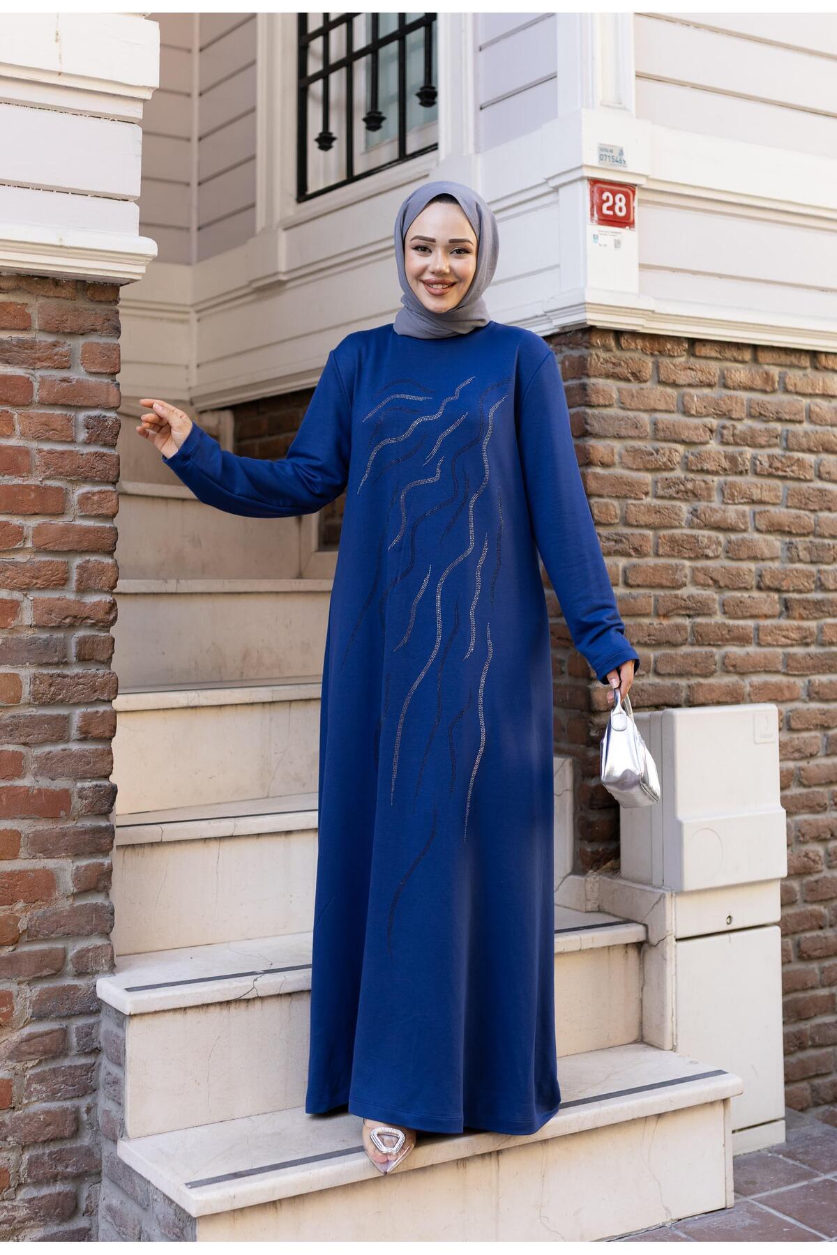 Hb Harma Time Butik Kadın Taş İşlemeli Rahat Kalıp Mavi Elbise Özellikleri