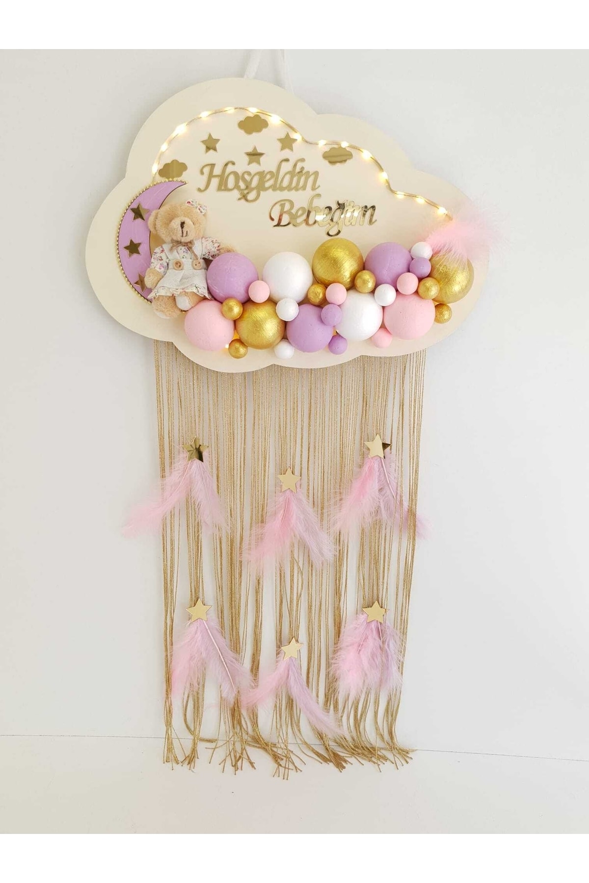 HD Different Kapı Süsü Ledli Bubble Ayıcıklı Ahşap Bulut Pano
