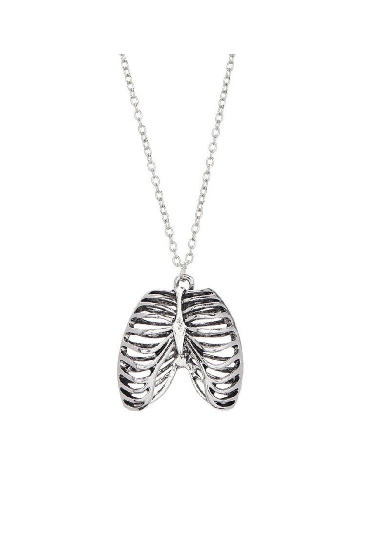 Herşey Nota Moda Gotik Vintage Göğüs Kafesi Kolye Anatomik Iskelet Kalp Retro Kolye Takı Özellikleri