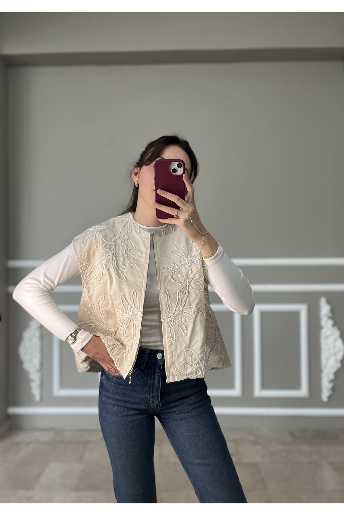 HEWES Bej Nakışlı Yelek Özellikleri