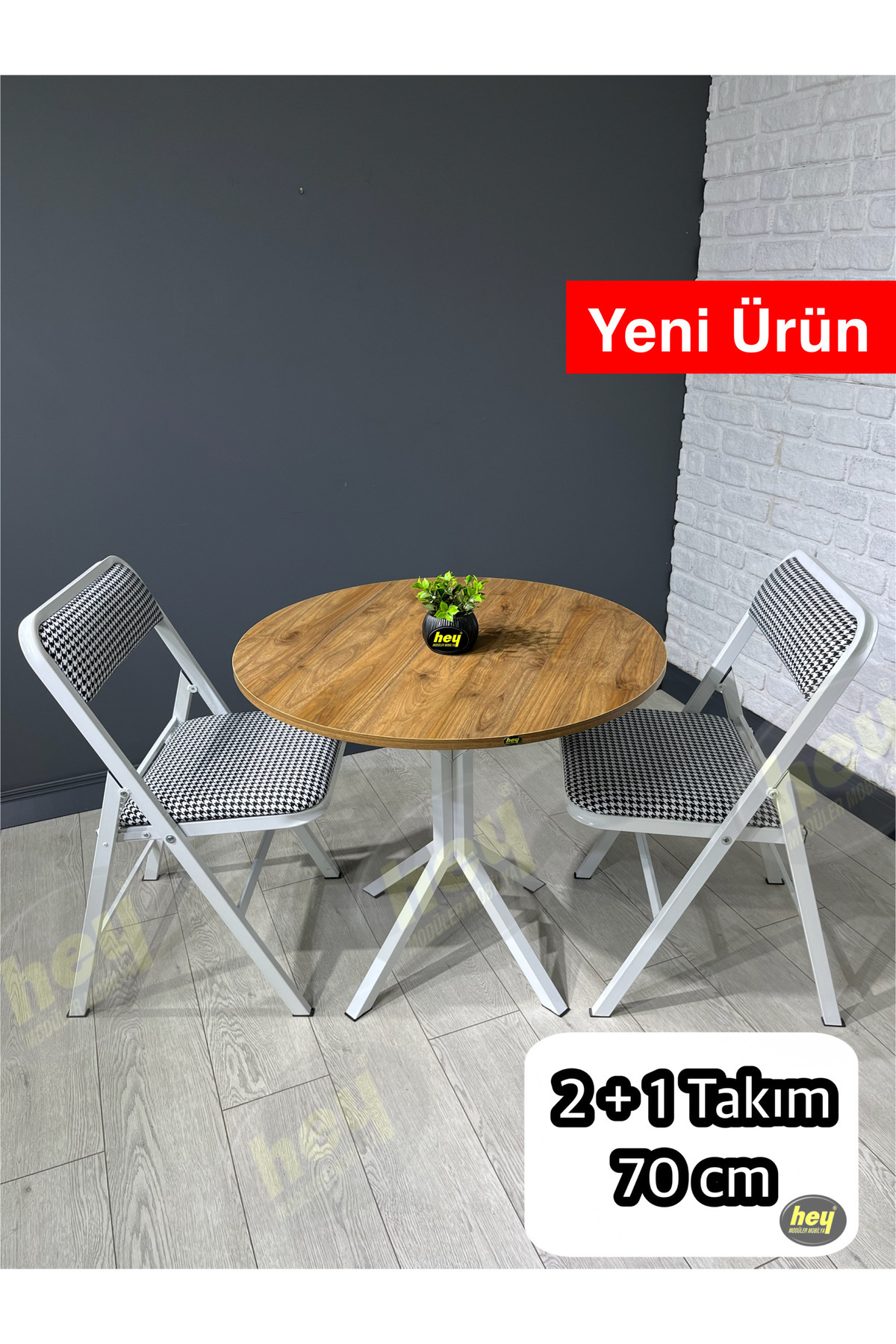 hey modüler mobilya Pars Ceviz 2 Kişilik Yuvarlak Mutfak Yemek Masası Takımı 2+1 Kazayağı Kumaş 70 cm Özellikleri