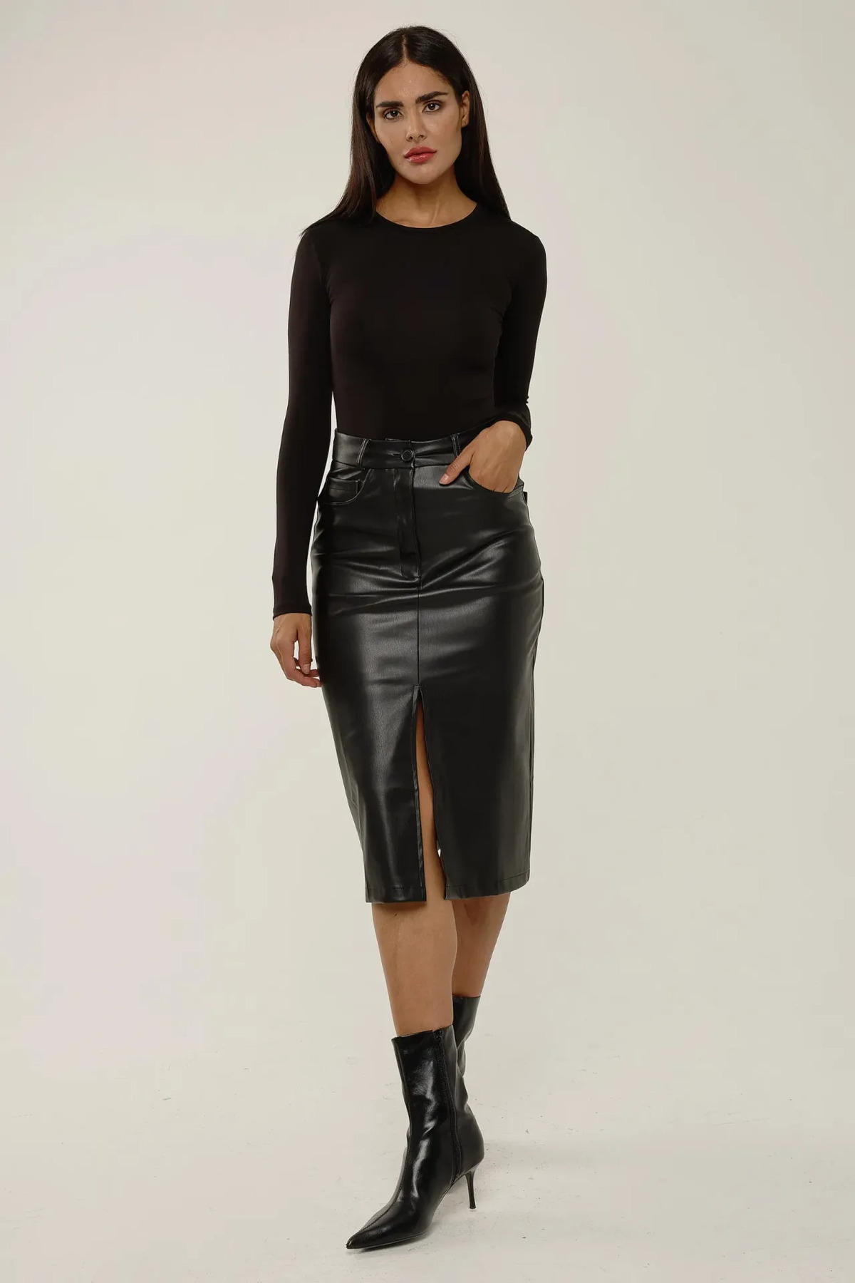 Hiccup Yırtmaçlı Suni Deri Midi Etek Özellikleri