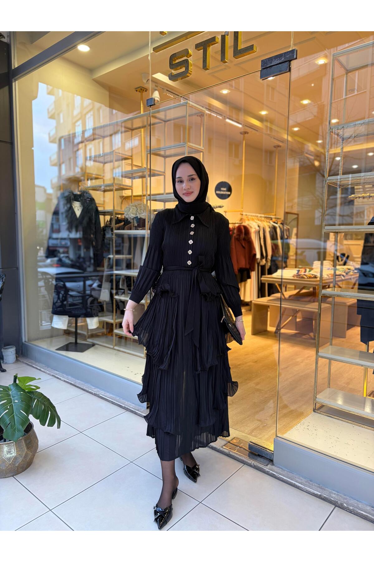 HİLYE STİL KAT KAT PLİSELİ ELBİSE