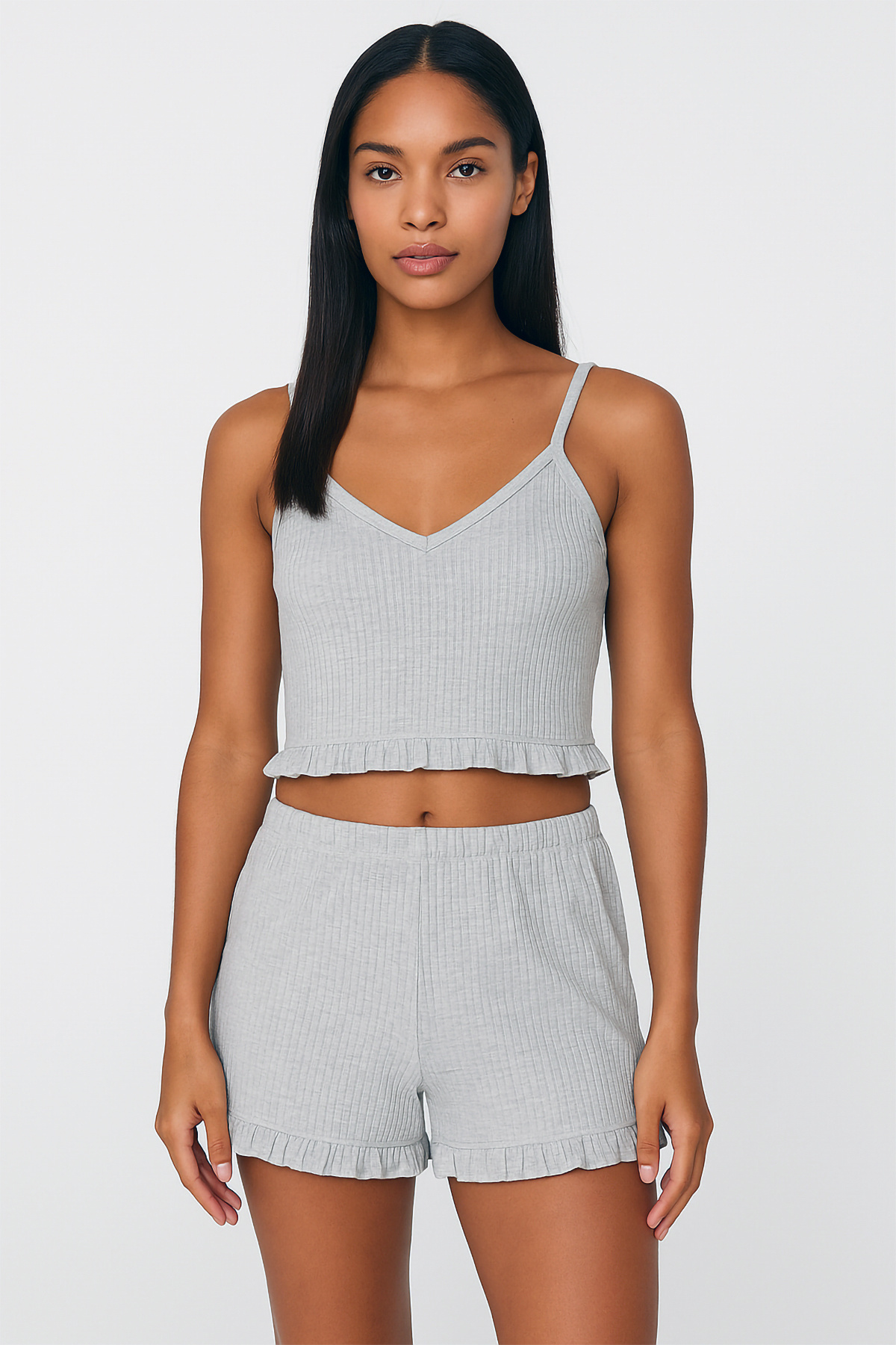 HNX Pamuklu Fitilli Crop Atlet ve Fırfırlı Şort Kadın Pijama Takımı Özellikleri