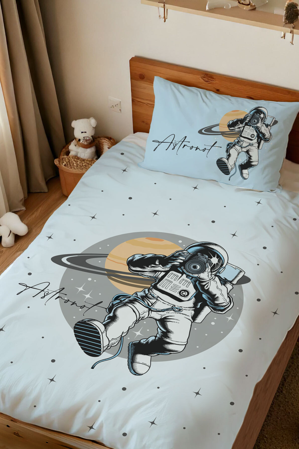 Homamia Özel Baskılı %100 Pamuk Tek Kişilik Nevresim Takımı Astronot