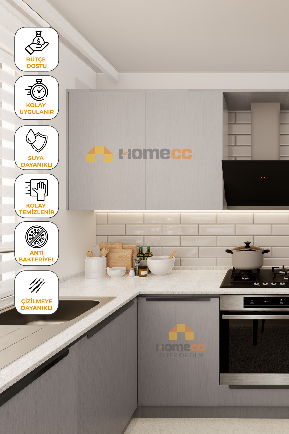 HOMECC İNTERİOR Yapışkanlı Folyo - Minimal Huş Kaplama Kağıdı - Mobilya Duvar Kapı - 120cm Genişlik - MW755 Özellikleri