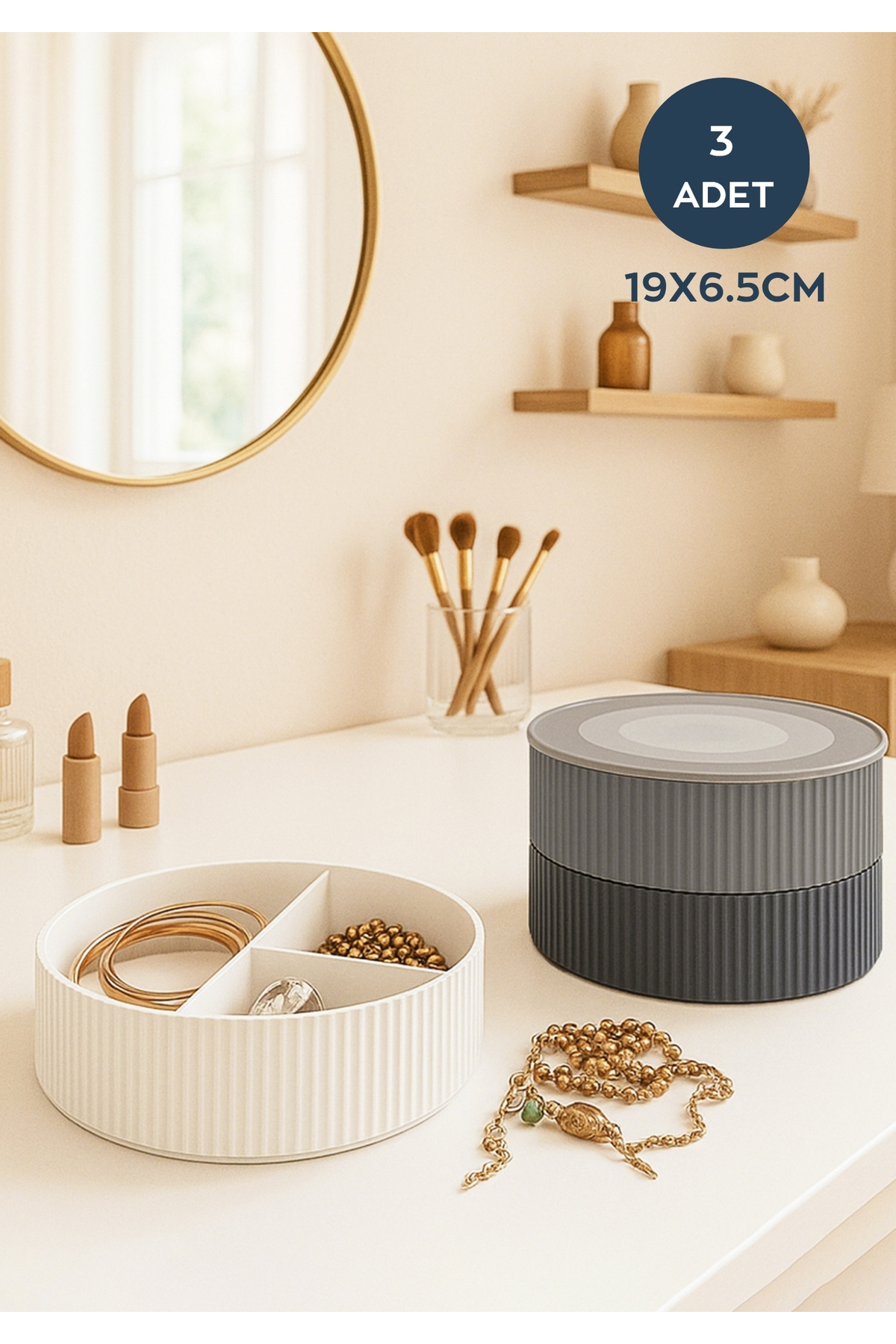 HOMİNG Çok Amaçlı 3'lü Kapaklı Makyaj Mutfak Kutusu Organizer Set Org-2007